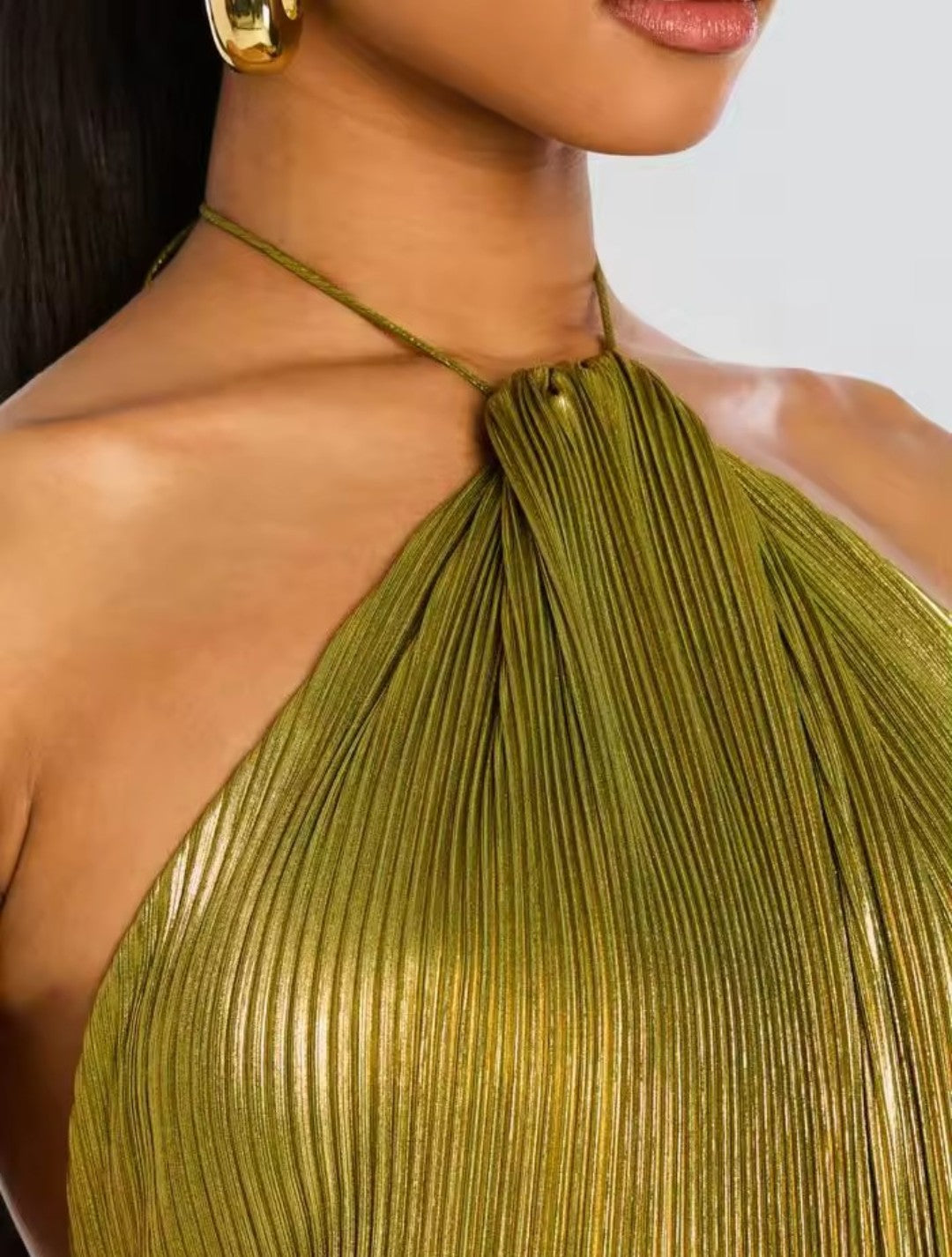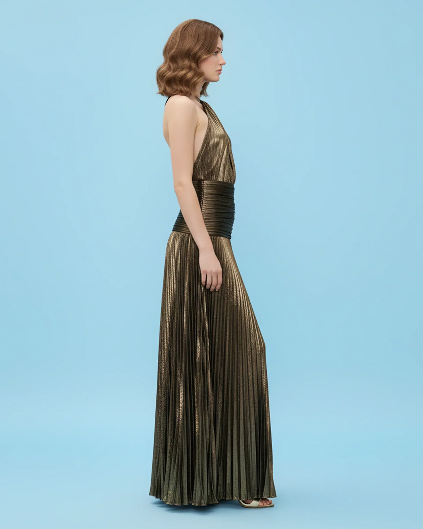 Elegant halterneck neckline – finely pleated to accentuate your shoulders and décolletage.